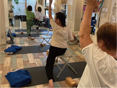 椅子を使ったクラスです。バランスや筋トレ、ストレッチなど幅広く体を動かします。